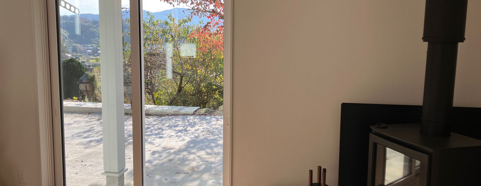 吹き抜けに光が降り注ぐ、薪ストーブのあるお家